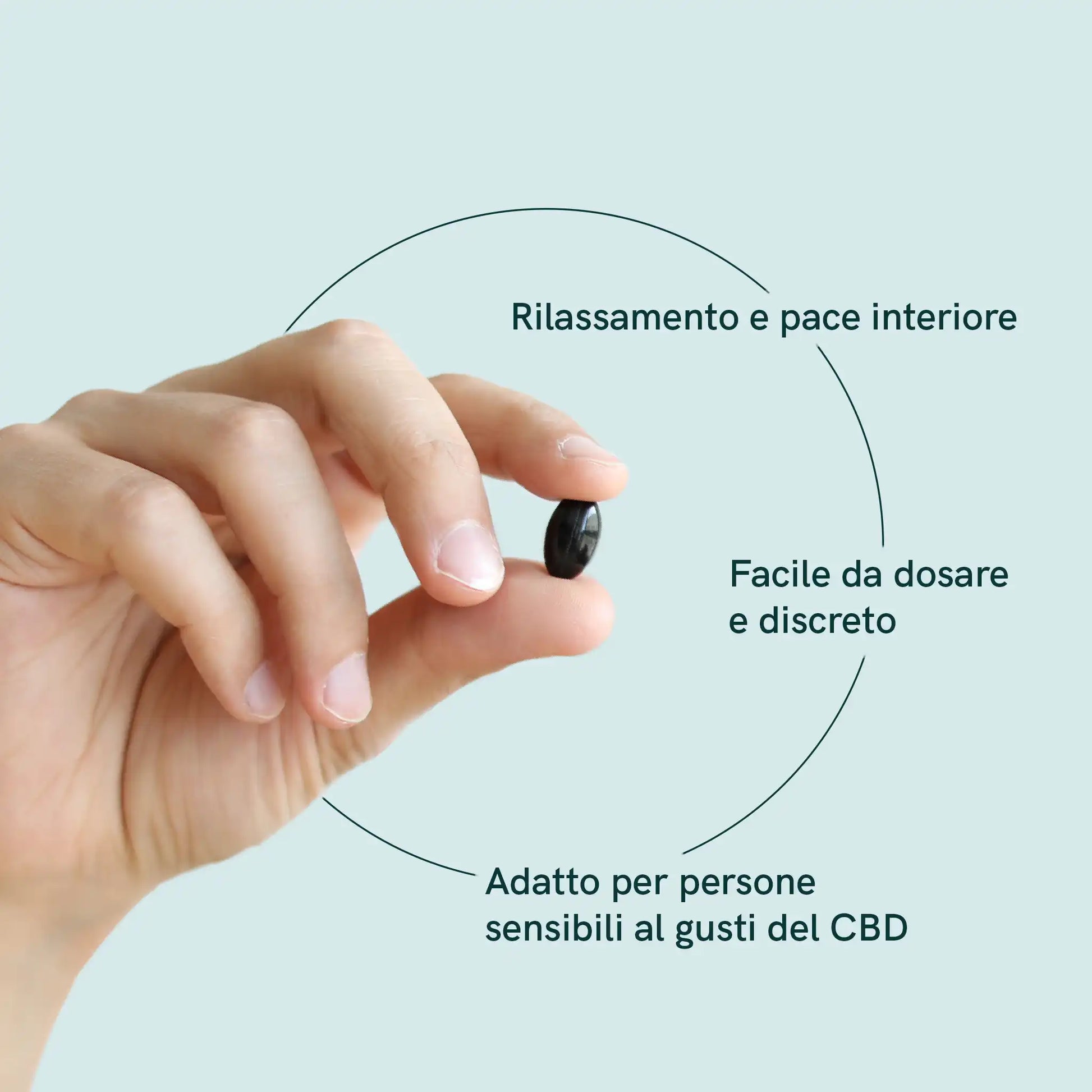 - 6,4 mg di CBD per capsula (equivalente a una goccia di olio di CBD al 15%)