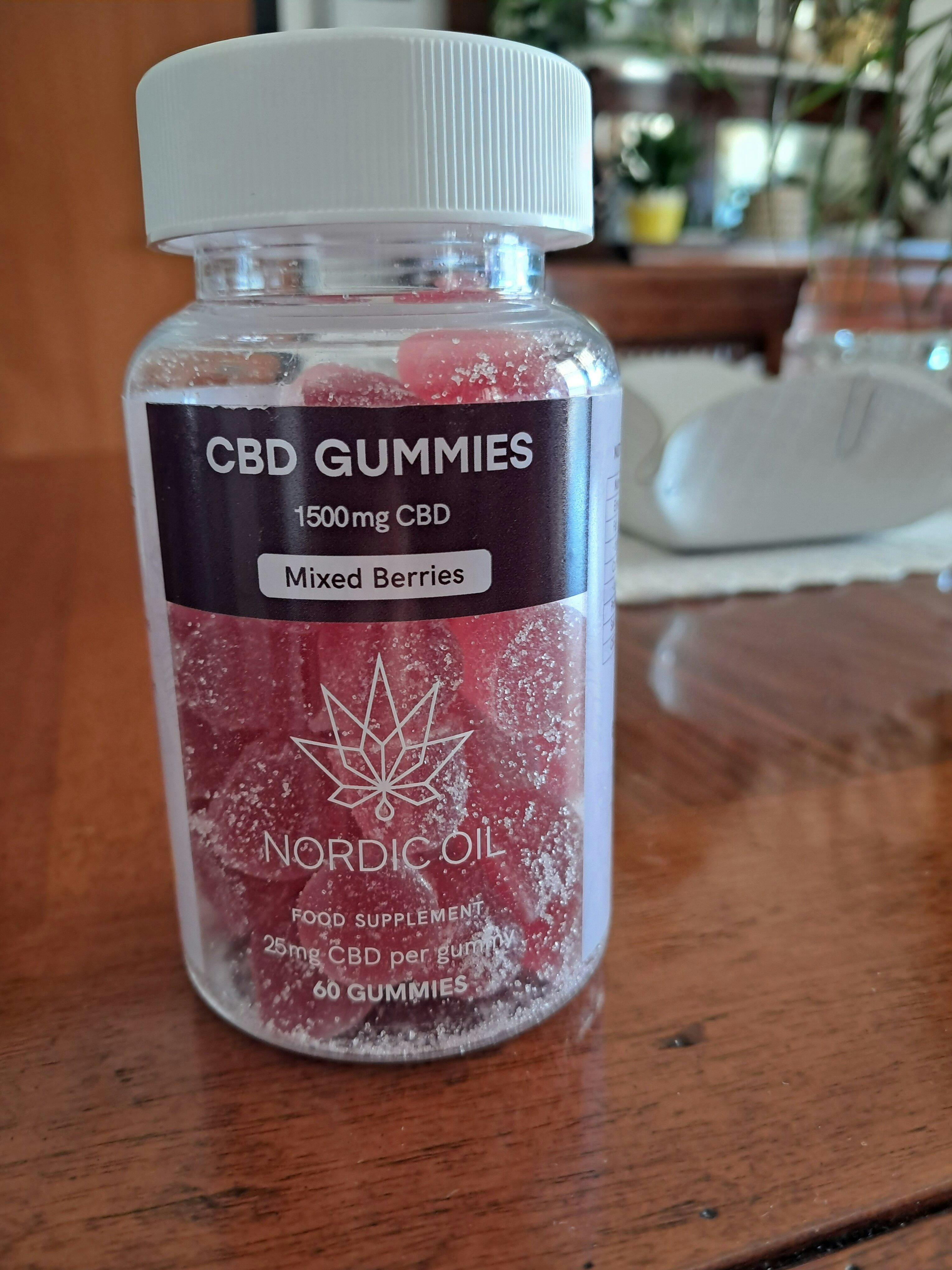 Le gummies al CBD (1500 mg) di Nordic Oil sono deliziose e perfette da portare sempre con sé. Ogni caramella contiene 25 mg di CBD ed è aromatizzata ai frutti di bosco. Una confezione contiene 60 gummies.