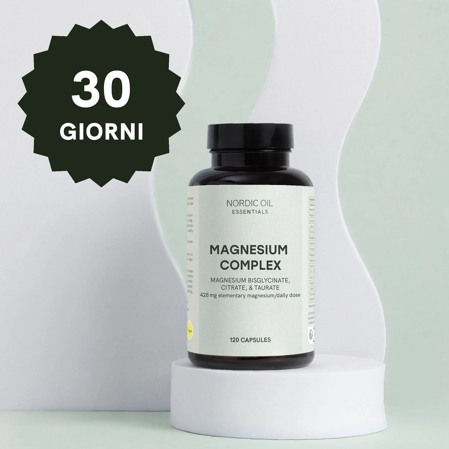 Le nostre capsule di Magnesio Complex offrono una miscela accuratamente bilanciata di magnesio bisglicinato, magnesio citrato e magnesio taurato. Queste tre forme altamente biodisponibili garantiscono un eccellente assorbimento e supportano diverse funzioni dell’organismo.