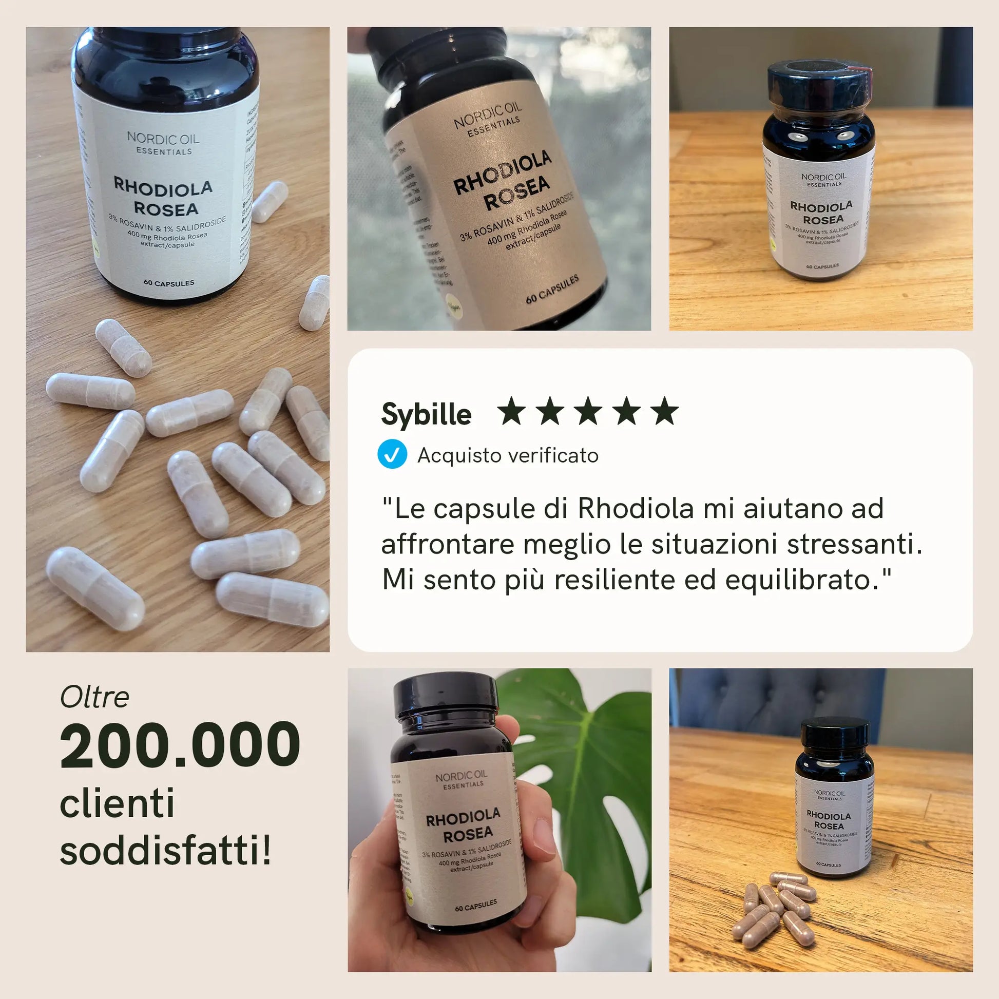 Molti utenti segnalano che la Rhodiola Rosea può aiutare a combattere l'esaurimento e la stanchezza. Essendo un adattogeno, supporta la capacità dell'organismo di affrontare lo stress a lungo termine, ridurre l'affaticamento e migliorare i livelli di energia. Sebbene le esperienze individuali possano variare, molti studi dimostrano che la Rhodiola Rosea può alleviare la sensazione di sopraffazione e aumentare la vitalità nella vita quotidiana. Può aiutare a promuovere un flusso energetico più equilibrato, soprattutto nelle persone con alti livelli di stress fisico e mentale.