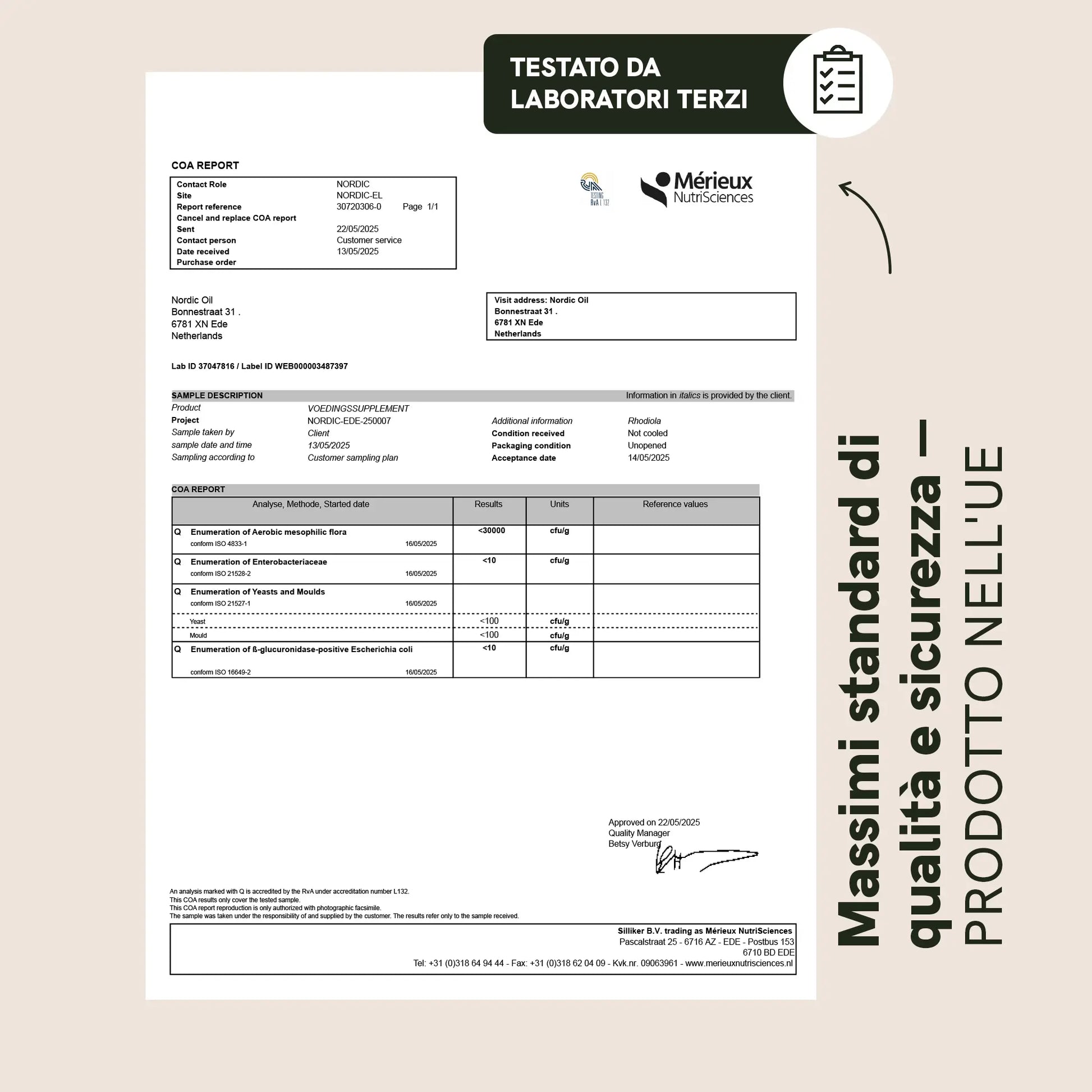 | Estratto di Rhodiola Rosea | 400 mg | 800 mg |