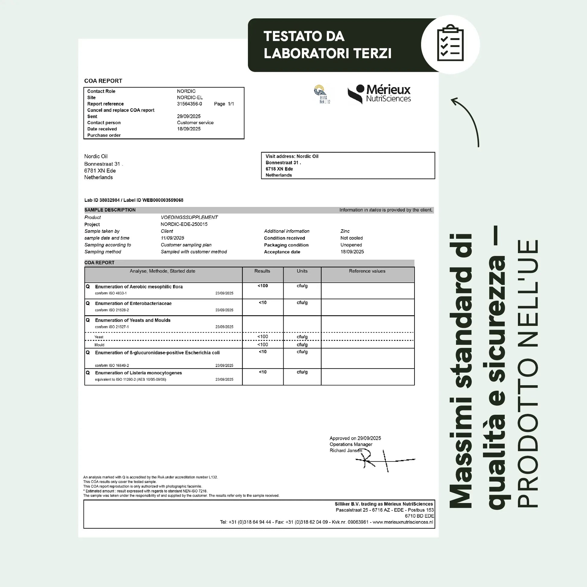 Lo zinco è essenziale per il corretto funzionamento del sistema immunitario. Aiuta ad attivare le cellule T responsabili dell'attacco alle cellule infette. Lo zinco aiuta anche a regolare le risposte immunitarie e a mantenere l'integrità della pelle, che rappresenta la prima linea di difesa contro gli agenti patogeni. L'assunzione regolare di zinco può aiutare l'organismo a combattere le infezioni, promuovere la produzione di cellule immunitarie e ridurre la gravità del raffreddore e di altre malattie.
