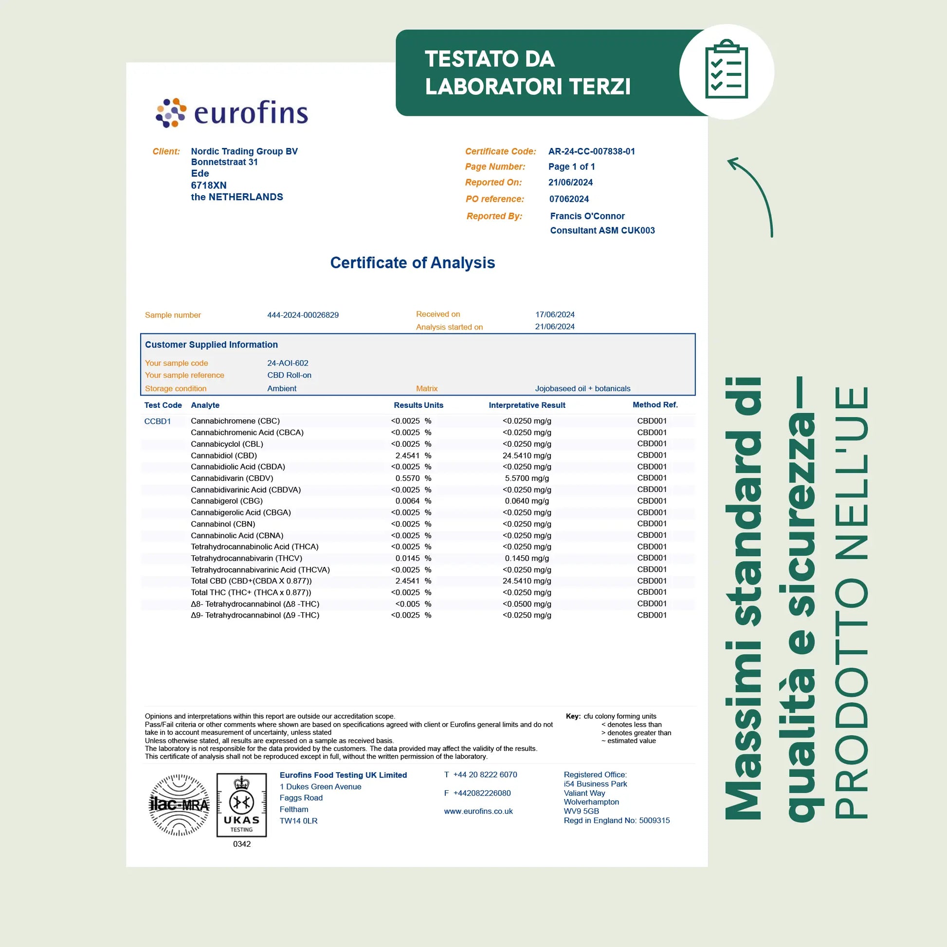 - Roll-On da 10 ml con CBD, arnica e oli essenziali