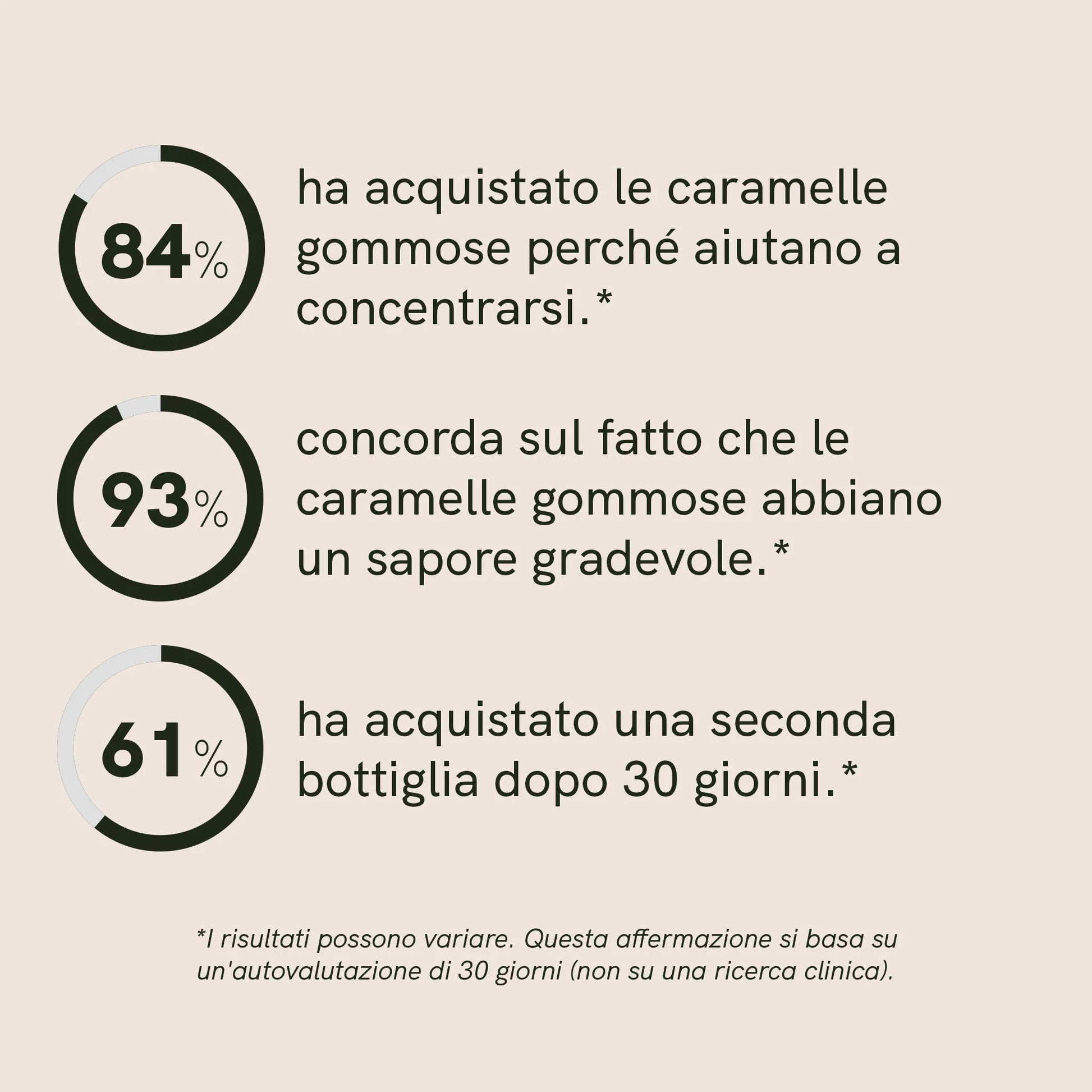 È possibile assumere le caramelle gommose in qualsiasi momento della giornata, a seconda della propria routine quotidiana: mattina, pomeriggio o sera. L'importante è assumerli regolarmente ogni giorno.