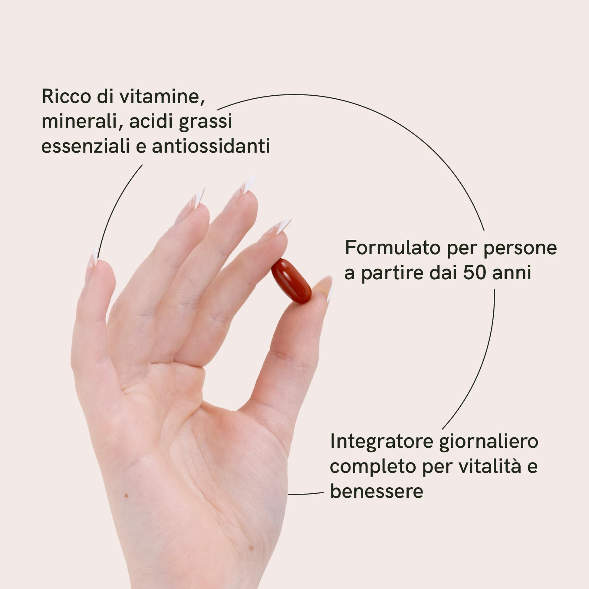 SÌ. Sebbene il prodotto sia stato sviluppato per la fascia di età over 50, resta un integratore alimentare completo per adulti di tutte le età. Ricordatevi solo che è stato progettato tenendo conto delle esigenze degli anziani. Pertanto, il contenuto di nutrienti potrebbe essere diverso rispetto agli integratori destinati ai più giovani.