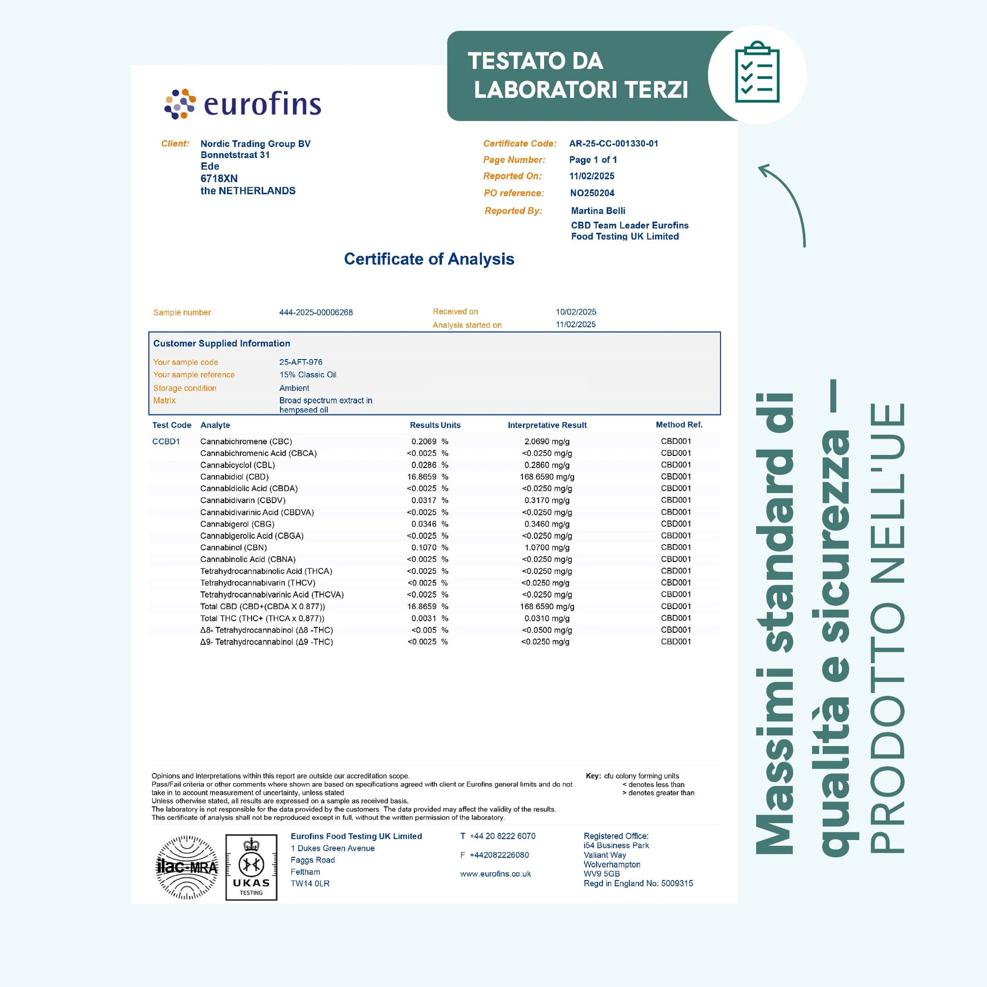 Maggiori informazioni sull'olio di CBD 15% Classic