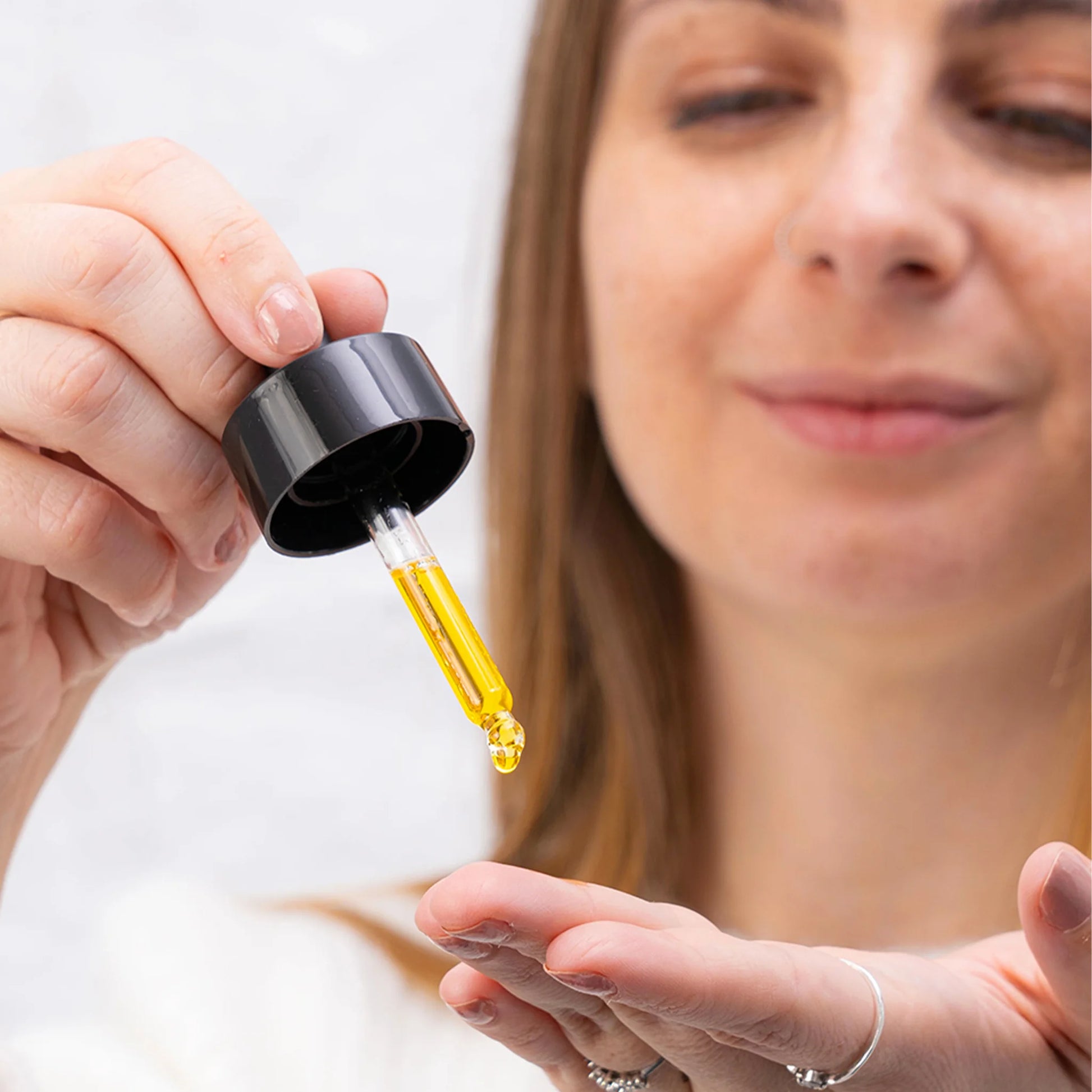 Scoprite il segreto di una pelle luminosa e lenita con CALM, il nostro olio nutriente per il viso. Questa ricca miscela di CBD e olio di argan soddisfa il bisogno della pelle di recever una cura intensiva in inverno e mantere la produzione di sebo in equilibrio durante tutto l'anno.